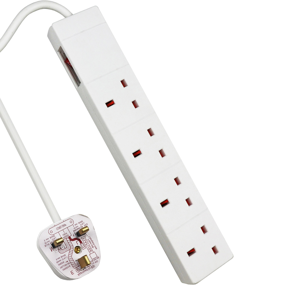 This 4-gang switched extension lead provides a practical power solution for any setting. Boasting four sockets and a convenient single on/off switch, manageing the power to multiple devices is effortless. Its 2-metre white cable and robust construction, incorporating high-quality materials and safety features, guarantee reliable and long-lasting performance.