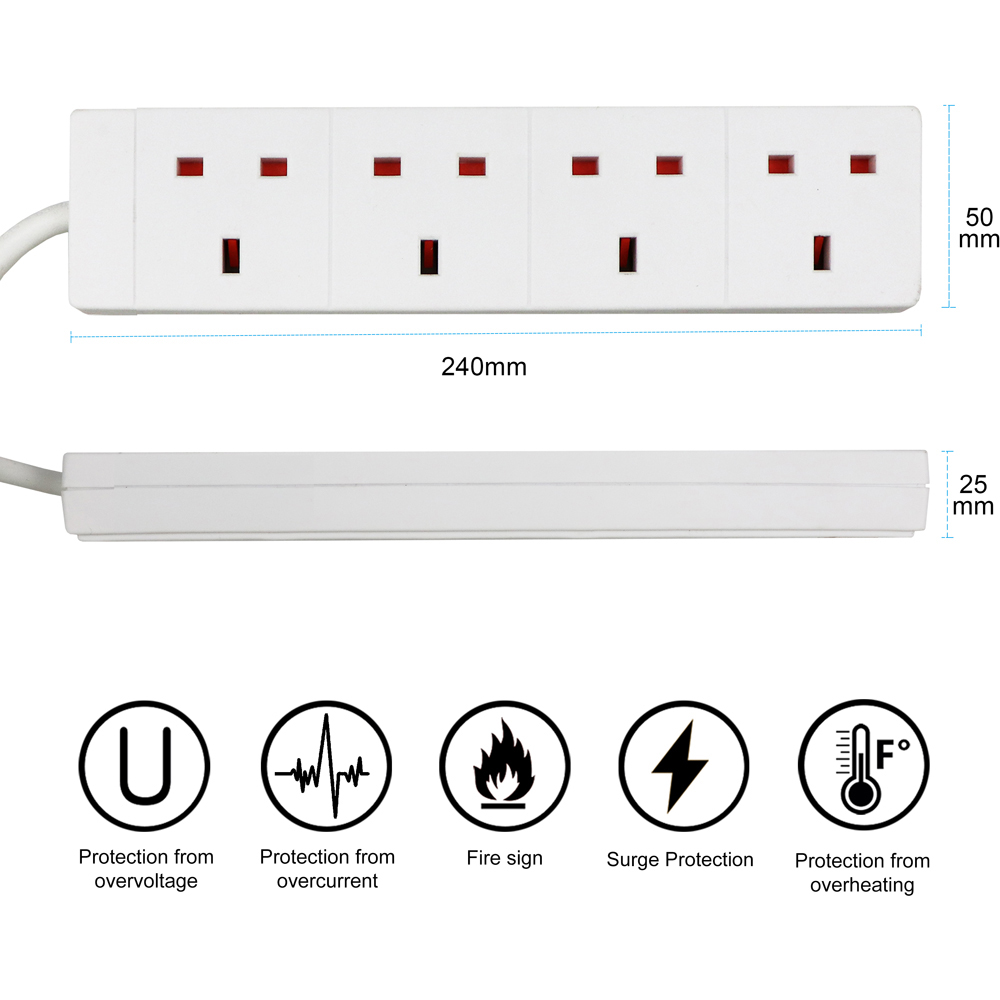 This four-way 13A extension lead is the perfect solution for those times when you need more power sockets. Its generous 5-metre cable length offers flexibility for connecting multiple devices, whether at home, in the office, or in a workshop. Lightweight and compact, it's easy to manage and position wherever you need it.