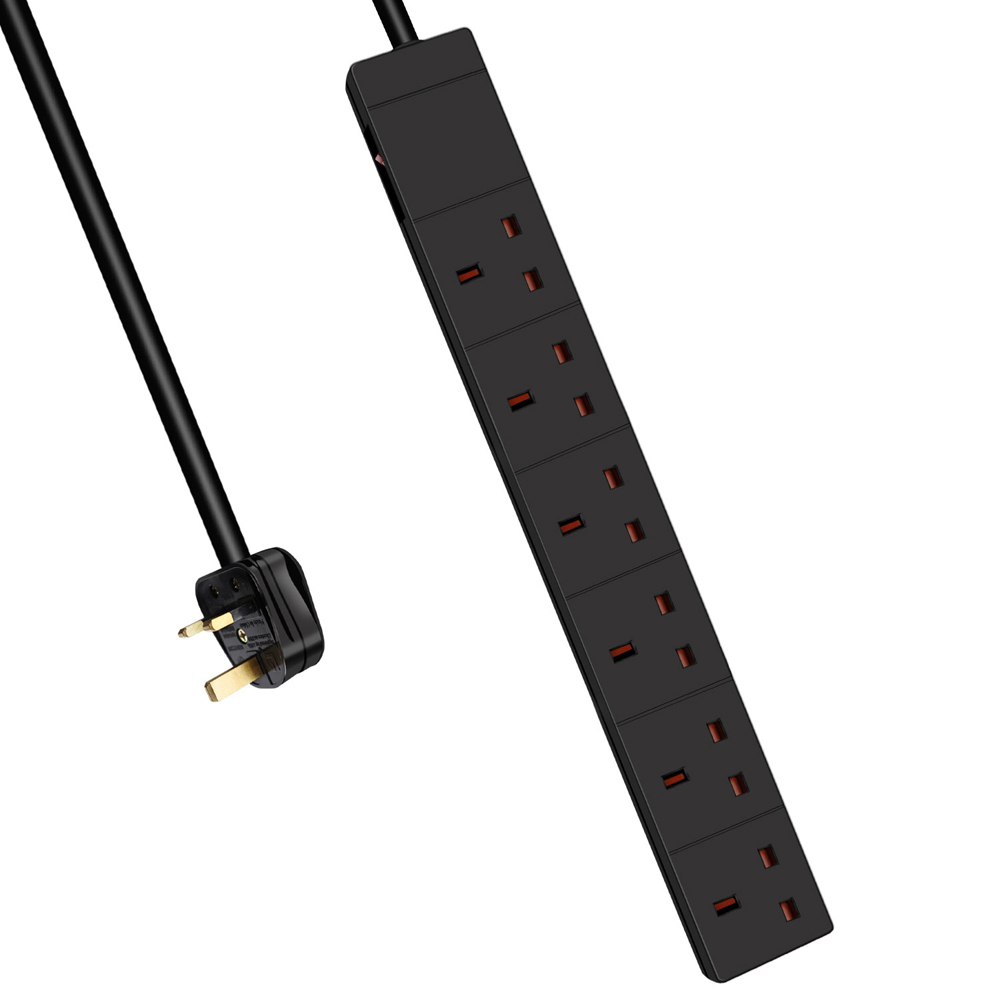 ExtraStar 6 Way 13A Black Extension Lead with Switch 1m