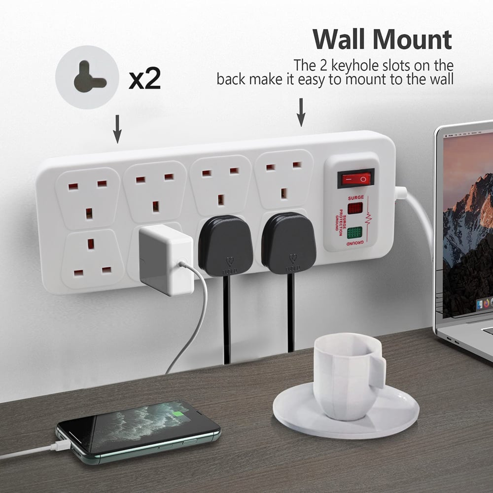 ExtraStar 8 Gang 13A White Switched Surge-Protected Extension Lead 5m
