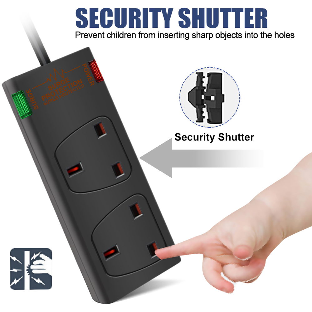 ExtraStar Black 13A 3m 2 Socket Surge Protected Extension Lead