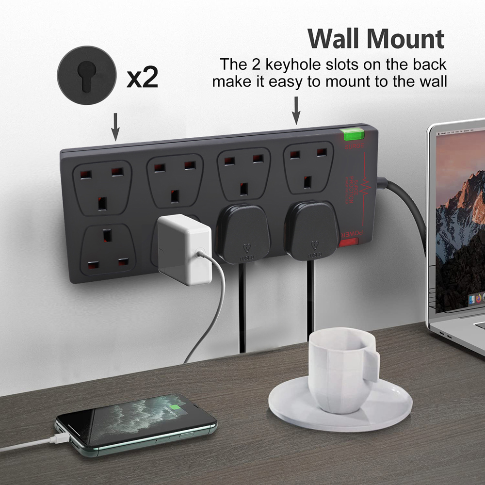 ExtraStar Black 13A 5m 8 Socket Surge Protected Extension Lead