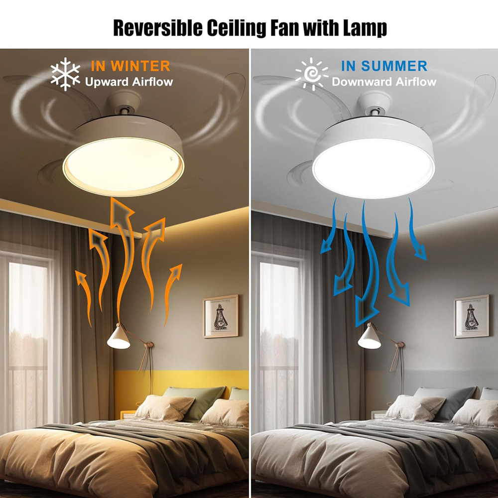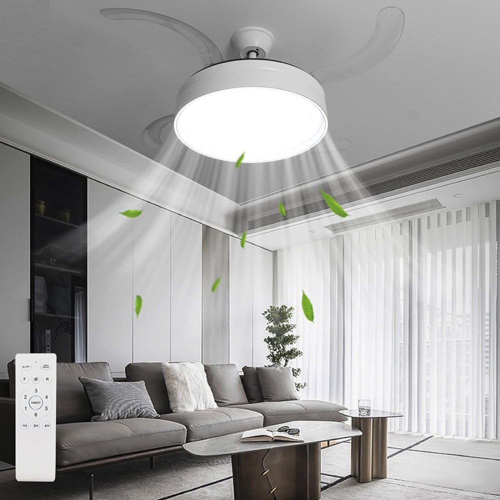 ExtraStar White Retractable Blades LED Ceiling Fan Light with Remote 42 inch