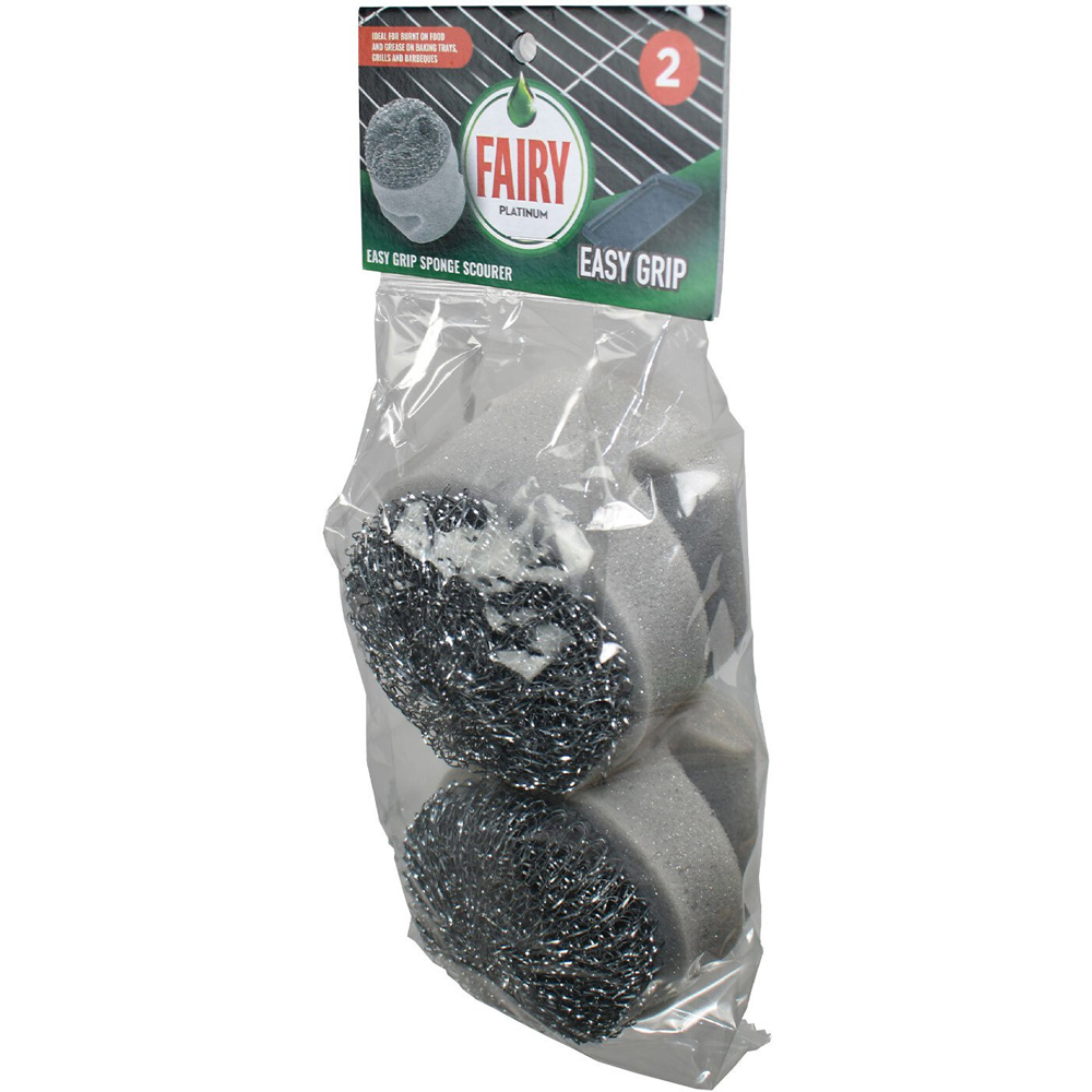 Fairy Platinum Dual Sided Easy Grip Sponge Scourer 2 Pack