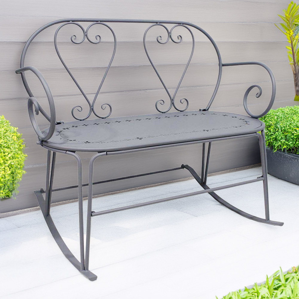 Introduce a touch of gentle motion to your outdoor haven with this resilient rocking bench. Crafted from iron and PE, its grey colour scheme effortlessly complements any garden aesthetic. Sized at 99.0 x 74.0 x 92.0 cm, it's perfectly suited for seating two people. Weatherproof and easy to clean, this bench offers a comfortable spot for relaxed swinging and enjoying the outdoors.