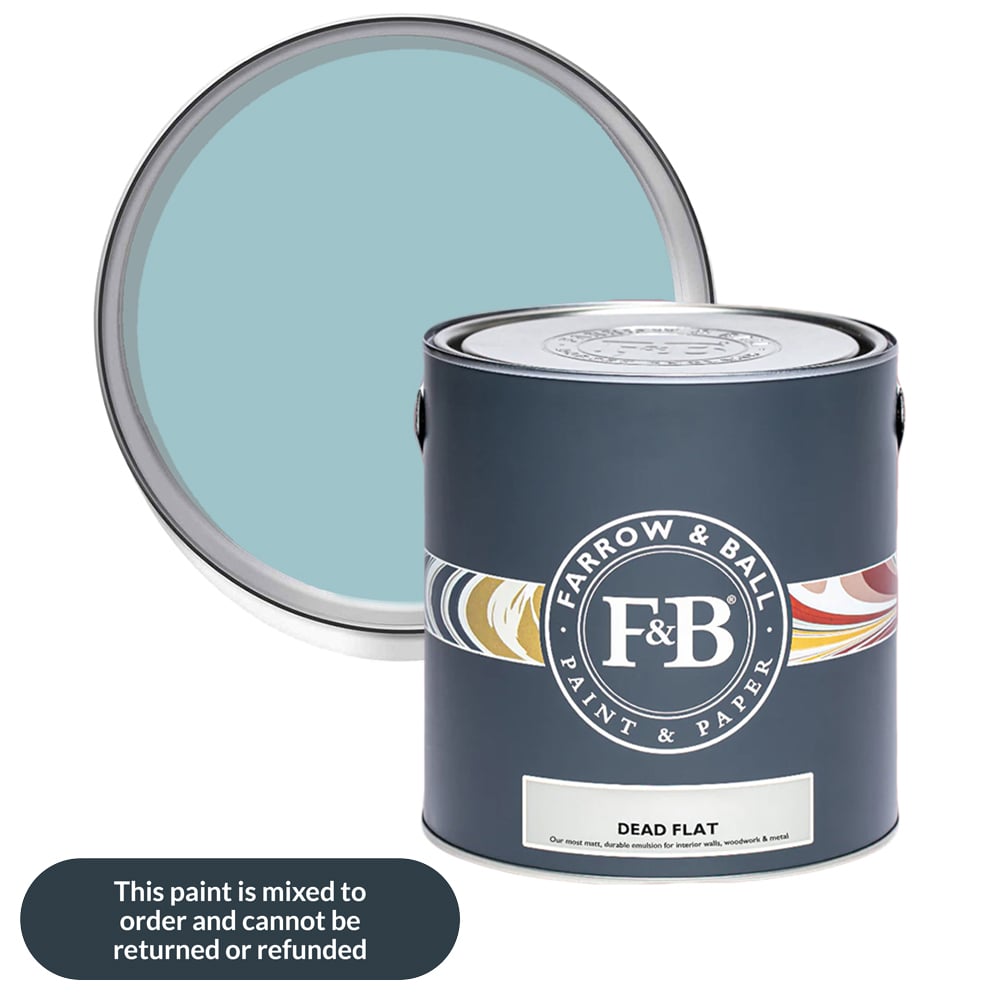 Designed for walls, woodwork, and even metal, the Farrow & Ball Dead Flat Paint is perfect for hallways and living rooms. Crafted in England, using the finest ingredients, it achieves a delicate, vintage look. Its unique formula, based on alkyd resin, gives it a remarkably flat finish that's both beautiful and surprisingly durable. The finish is also scuff-resistant and easy to clean, making it ideal for high-traffic areas of your home. Shade: Blue Ground. Size: 5L.