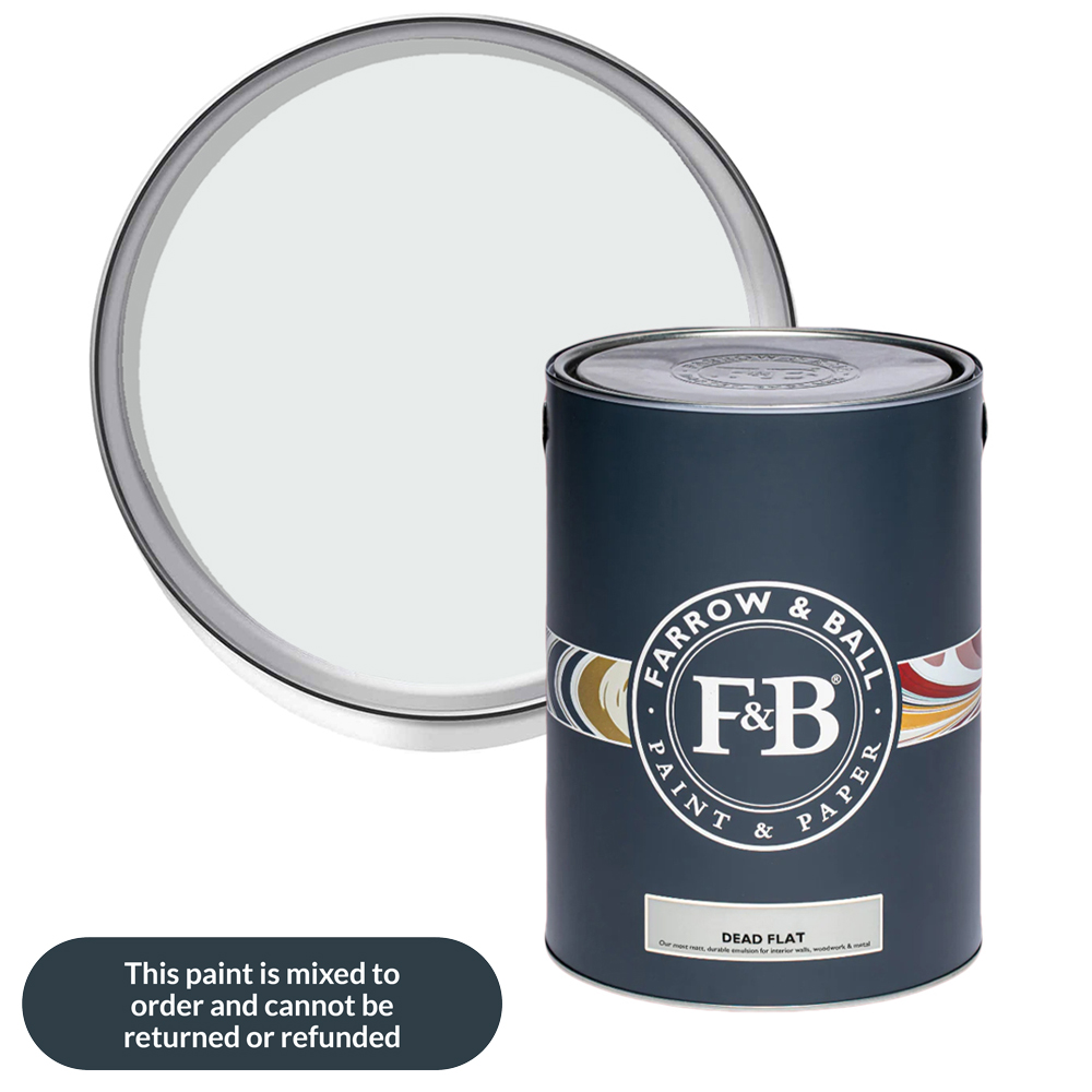 Designed for walls, woodwork, and even metal, the Farrow & Ball Dead Flat Paint is perfect for hallways and living rooms. Crafted in England, using the finest ingredients, it achieves a delicate, vintage look. Its unique formula, based on alkyd resin, gives it a remarkably flat finish that's both beautiful and surprisingly durable. The finish is also scuff-resistant and easy to clean, making it ideal for high-traffic areas of your home. Shade: Cabbage White. Size: 5L.