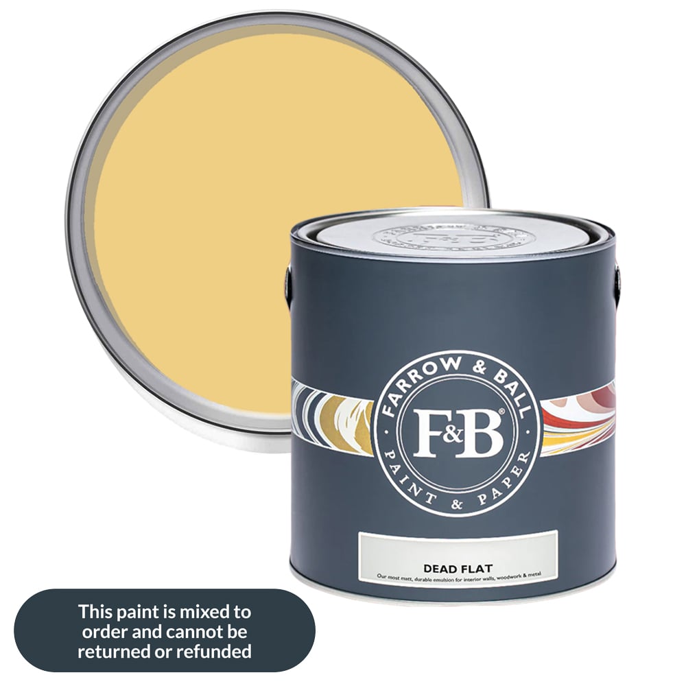 Designed for walls, woodwork, and even metal, the Farrow & Ball Dead Flat Paint is perfect for hallways and living rooms. Crafted in England, using the finest ingredients, it achieves a delicate, vintage look. Its unique formula, based on alkyd resin, gives it a remarkably flat finish that's both beautiful and surprisingly durable. The finish is also scuff-resistant and easy to clean, making it ideal for high-traffic areas of your home. Shade: Citron. Size: 2.5L.