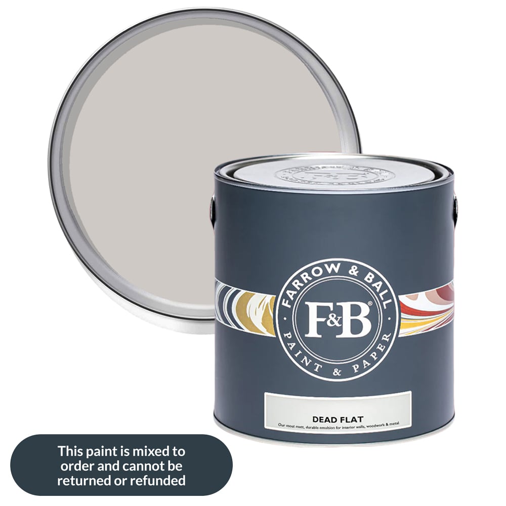 Designed for walls, woodwork, and even metal, the Farrow & Ball Dead Flat Paint is perfect for hallways and living rooms. Crafted in England, using the finest ingredients, it achieves a delicate, vintage look. Its unique formula, based on alkyd resin, gives it a remarkably flat finish that's both beautiful and surprisingly durable. The finish is also scuff-resistant and easy to clean, making it ideal for high-traffic areas of your home. Shade: Cornforth White. Size: 2.5L.