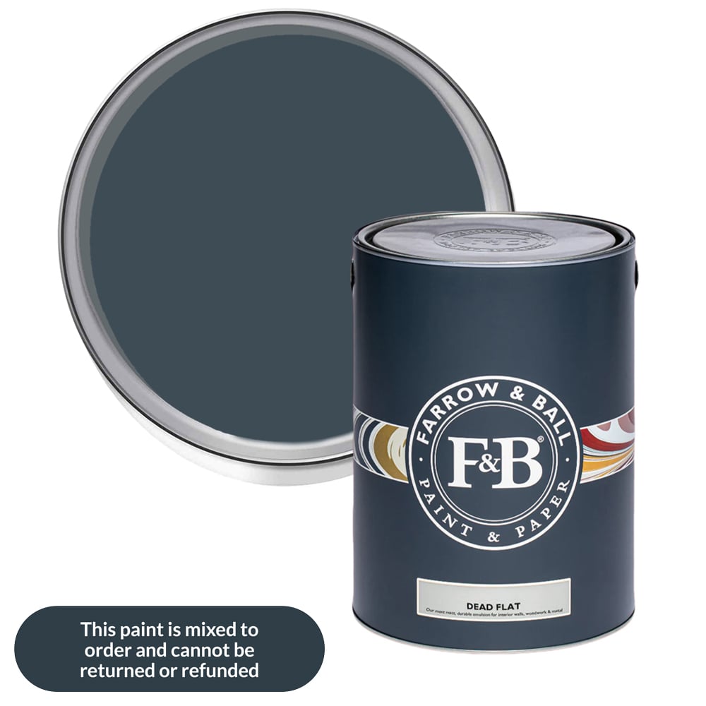 Designed for walls, woodwork, and even metal, the Farrow & Ball Dead Flat Paint is perfect for hallways and living rooms. Crafted in England, using the finest ingredients, it achieves a delicate, vintage look. Its unique formula, based on alkyd resin, gives it a remarkably flat finish that's both beautiful and surprisingly durable. The finish is also scuff-resistant and easy to clean, making it ideal for high-traffic areas of your home. Shade: Hague Blue. Size: 5L.