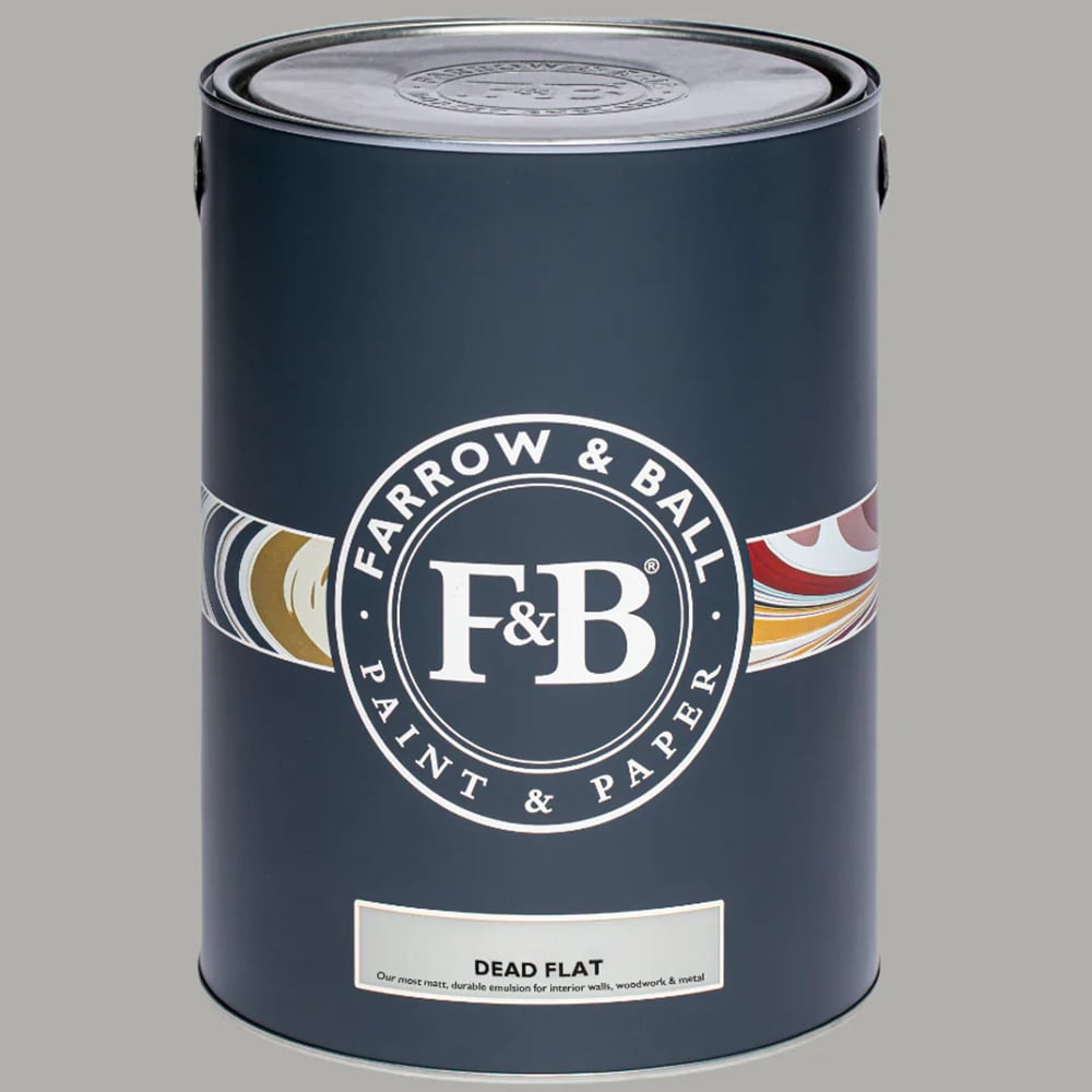 Designed for walls, woodwork, and even metal, the Farrow & Ball Dead Flat Paint is perfect for hallways and living rooms. Crafted in England, using the finest ingredients, it achieves a delicate, vintage look. Its unique formula, based on alkyd resin, gives it a remarkably flat finish that's both beautiful and surprisingly durable. The finish is also scuff-resistant and easy to clean, making it ideal for high-traffic areas of your home. Shade: Lamp Room Grey. Size: 5L.