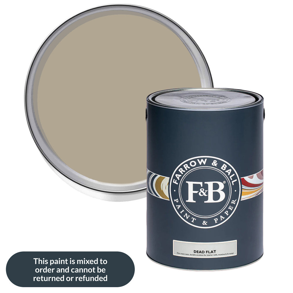 Designed for walls, woodwork, and even metal, the Farrow & Ball Dead Flat Paint is perfect for hallways and living rooms. Crafted in England, using the finest ingredients, it achieves a delicate, vintage look. Its unique formula, based on alkyd resin, gives it a remarkably flat finish that's both beautiful and surprisingly durable. The finish is also scuff-resistant and easy to clean, making it ideal for high-traffic areas of your home. Shade: Light Gray. Size: 5L.