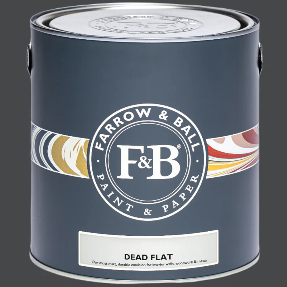 Designed for walls, woodwork, and even metal, the Farrow & Ball Dead Flat Paint is perfect for hallways and living rooms. Crafted in England, using the finest ingredients, it achieves a delicate, vintage look. Its unique formula, based on alkyd resin, gives it a remarkably flat finish that's both beautiful and surprisingly durable. The finish is also scuff-resistant and easy to clean, making it ideal for high-traffic areas of your home. Shade: Off Black. Size: 2.5L.