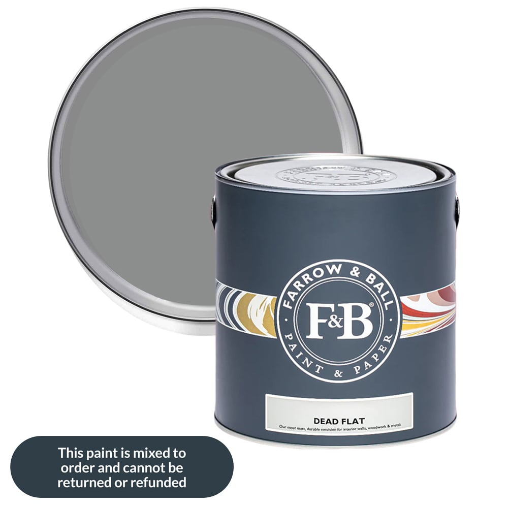 Designed for walls, woodwork, and even metal, the Farrow & Ball Dead Flat Paint is perfect for hallways and living rooms. Crafted in England, using the finest ingredients, it achieves a delicate, vintage look. Its unique formula, based on alkyd resin, gives it a remarkably flat finish that's both beautiful and surprisingly durable. The finish is also scuff-resistant and easy to clean, making it ideal for high-traffic areas of your home. Shade: Plummett. Size: 2.5L.