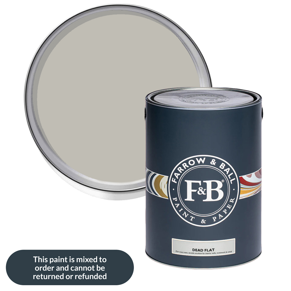 Designed for walls, woodwork, and even metal, the Farrow & Ball Dead Flat Paint is perfect for hallways and living rooms. Crafted in England, using the finest ingredients, it achieves a delicate, vintage look. Its unique formula, based on alkyd resin, gives it a remarkably flat finish that's both beautiful and surprisingly durable. The finish is also scuff-resistant and easy to clean, making it ideal for high-traffic areas of your home. Shade: Purbeck Stone. Size: 5L.