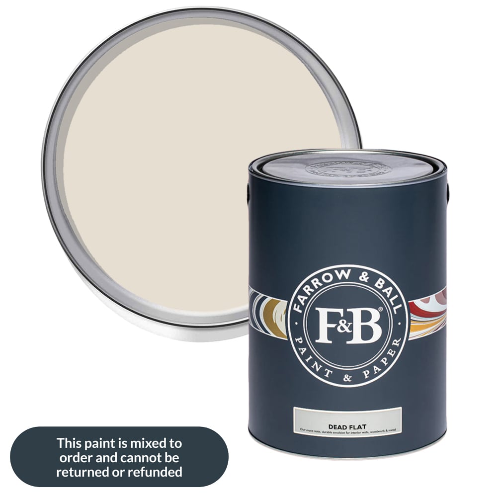 Designed for walls, woodwork, and even metal, the Farrow & Ball Dead Flat Paint is perfect for hallways and living rooms. Crafted in England, using the finest ingredients, it achieves a delicate, vintage look. Its unique formula, based on alkyd resin, gives it a remarkably flat finish that's both beautiful and surprisingly durable. The finish is also scuff-resistant and easy to clean, making it ideal for high-traffic areas of your home. Shade: School House White. Size: 5L.
