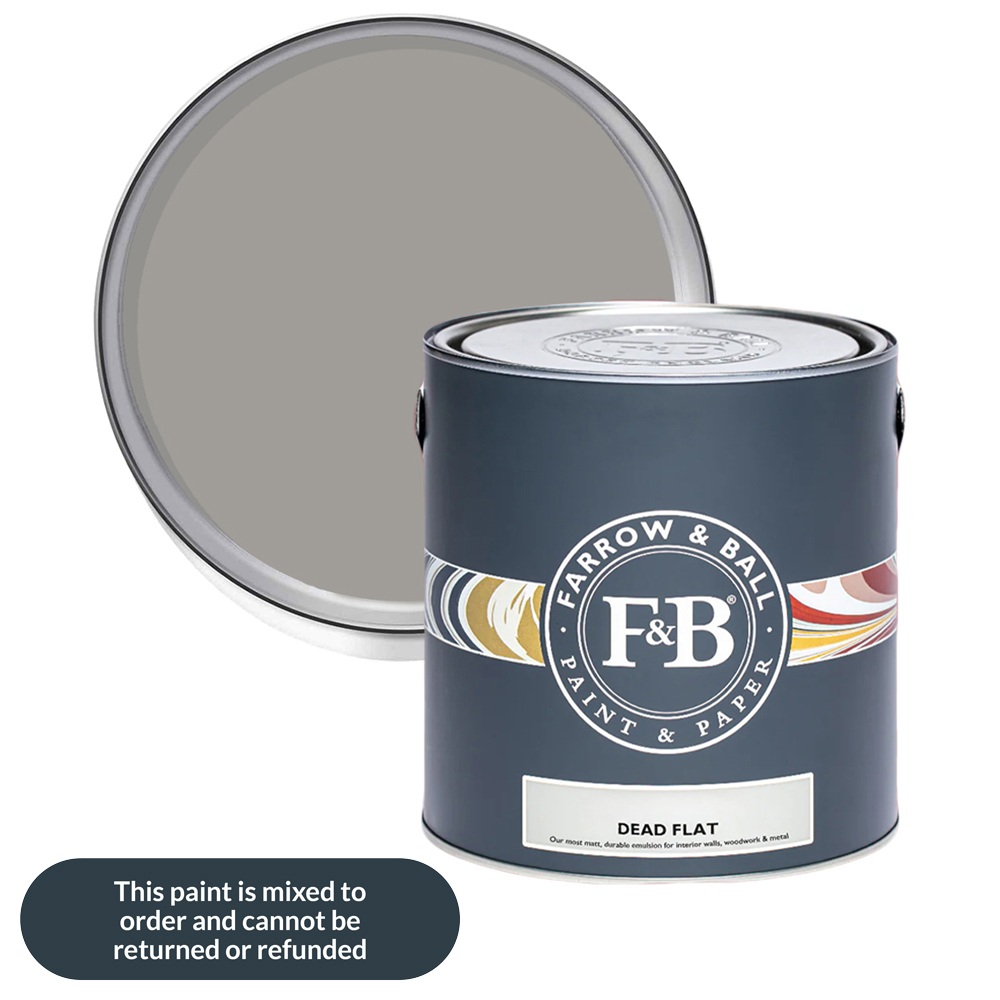 Designed for walls, woodwork, and even metal, the Farrow & Ball Dead Flat Paint is perfect for hallways and living rooms. Crafted in England, using the finest ingredients, it achieves a delicate, vintage look. Its unique formula, based on alkyd resin, gives it a remarkably flat finish that's both beautiful and surprisingly durable. The finish is also scuff-resistant and easy to clean, making it ideal for high-traffic areas of your home. Shade: Worsted. Size: 2.5L.