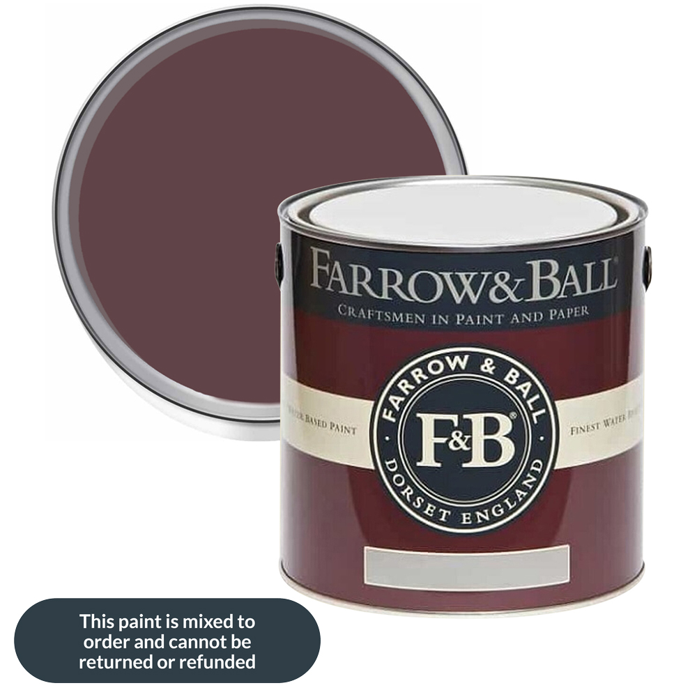The Farrow & Ball Estate Eggshell Paint is a washable, water-based satin finish for interior wood and metal. Its soft low-shine finish brings an understated elegance to trim and furniture and is suitable for doors, kitchen cupboards, radiators, and other wood and metalwork throughout the home. Shade: Brinjal. Size: 2.5L.