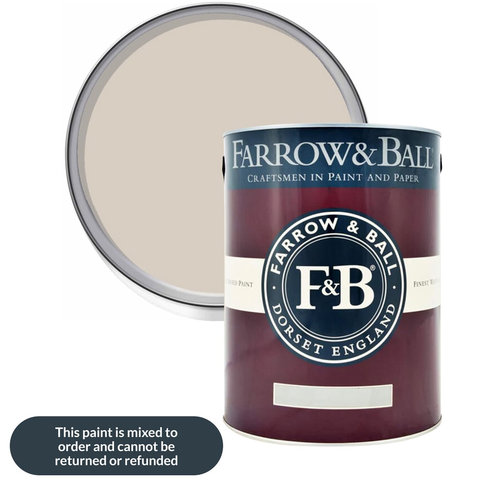 The Farrow & Ball Estate Eggshell Paint is a washable, water-based satin finish for interior wood and metal. Its soft low-shine finish brings an understated elegance to trim and furniture and is suitable for doors, kitchen cupboards, radiators, and other wood and metalwork throughout the home. Shade: Stirabout. Size: 2.5L.