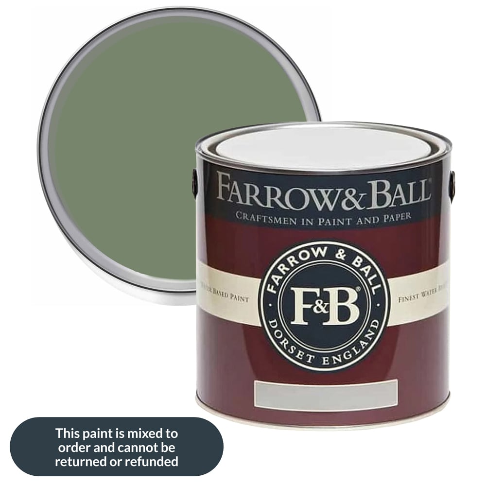 The Farrow & Ball Estate Emulsion Paint is a classic paint choice for walls and ceilings in low-traffic areas. Its matte, chalky finish beautifully hides minor imperfections and creates a rich, deep colour. This distinctive finish scatters light, making the colours appear deeper and more vibrant. The paint is water-based with low VOCs, meaning it has very little odour, making it a healthier choice for your home. Shade: Calke Green. Size: 5L.