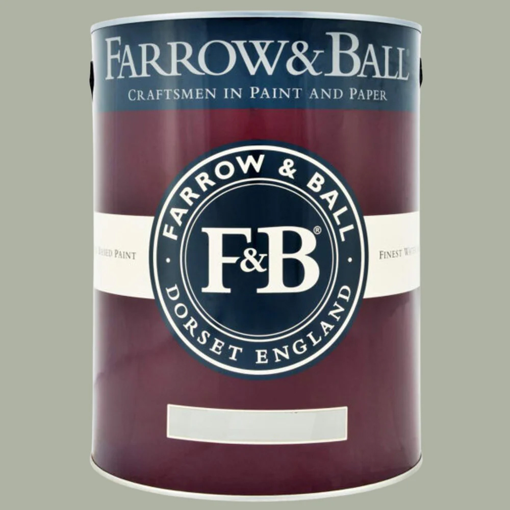 Give your walls a durable touch with this Farrow & Ball Modern Eggshell Satin Paint. It adds beautiful colour and a subtle satin finish while protecting wood, metal, and concrete. This tough, medium-sheen paint with a 40% sheen level is ideal for high-traffic areas like staircases, floors, kitchen cabinets, and even interior metal, garages, and workshops. It resists scuffs and stains, and is washable and wipeable, making it perfect for baseboards and other areas prone to wear and tear. Shade: Lime White. Size: 5L.