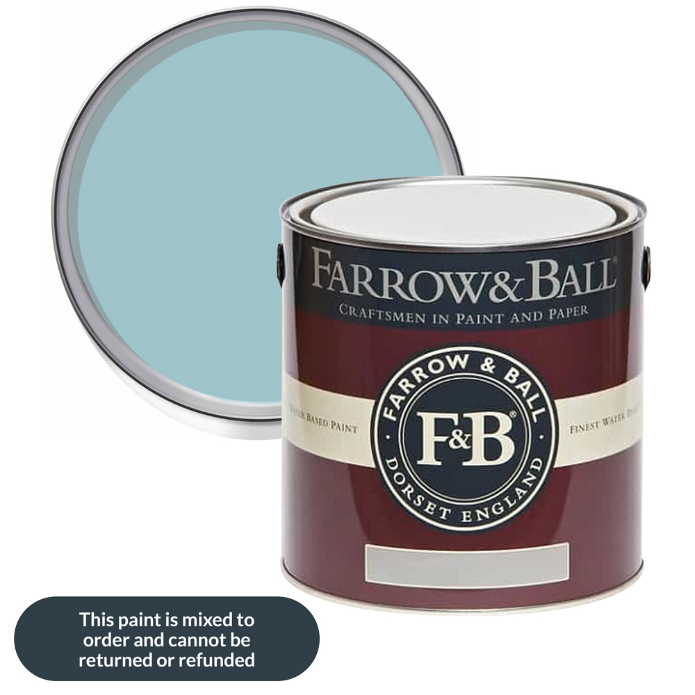 Give your walls a durable touch with this Farrow & Ball Modern Eggshell Satin Paint. It adds beautiful colour and a subtle satin finish while protecting wood, metal, and concrete. This tough, medium-sheen paint with a 40% sheen level is ideal for high-traffic areas like staircases, floors, kitchen cabinets, and even interior metal, garages, and workshops. It resists scuffs and stains, making it perfect for baseboards and other areas prone to wear and tear. Additionally, it is washable and wipeable for easy maintenance. Shade: Blue Ground. Size: 2.5L.