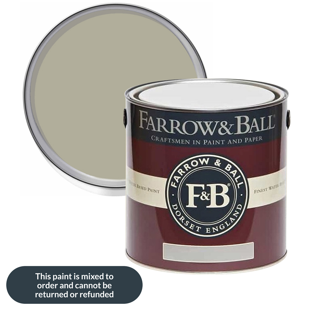 Give your walls a durable touch with this Farrow & Ball Modern Eggshell Satin Paint. It adds beautiful colour and a subtle satin finish while protecting wood, metal, and concrete. This tough, medium-sheen paint with a 40% sheen level is ideal for high-traffic areas like staircases, floors, kitchen cabinets, and even interior metal, garages, and workshops. It resists scuffs and stains, and is washable and wipeable, making it perfect for baseboards and other areas prone to wear and tear. Shade: French Grey. Size: 2.5L.