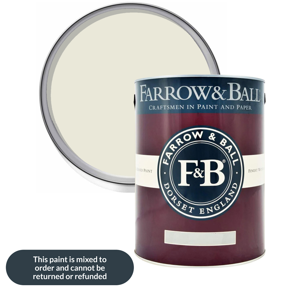 Give your walls a durable touch with this Farrow & Ball Modern Eggshell Satin Paint. It adds beautiful colour and a subtle satin finish while protecting wood, metal, and concrete. This tough, medium-sheen paint with a 40% sheen level is ideal for high-traffic areas like staircases, floors, kitchen cabinets, and even interior metal, garages, and workshops. It resists scuffs and stains, and is washable and wipeable, making it perfect for baseboards and other areas prone to wear and tear. Shade: James White. Size: 5L.