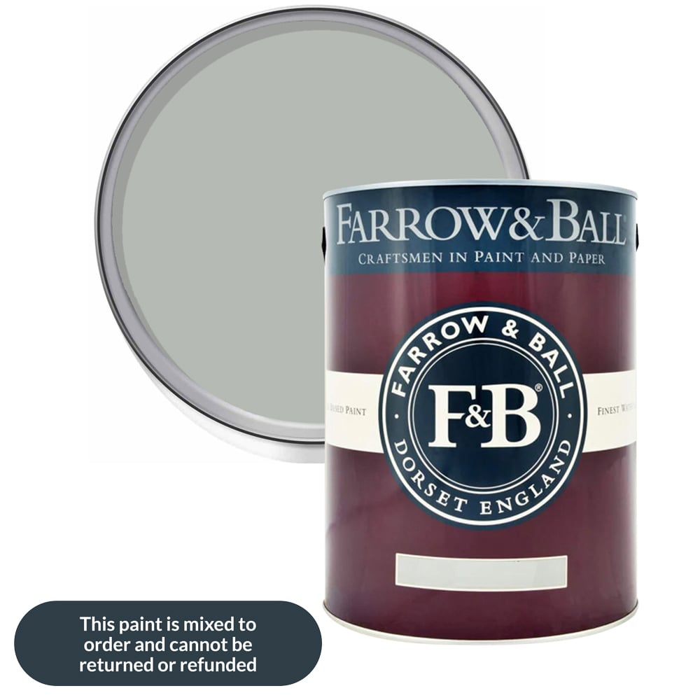 Give your walls a durable touch with this Farrow & Ball Modern Eggshell Satin Paint. It adds beautiful colour and a subtle satin finish while protecting wood, metal, and concrete. This tough, medium-sheen paint with a 40% sheen level is ideal for high-traffic areas like staircases, floors, kitchen cabinets, and even interior metal, garages, and workshops. It resists scuffs and stains, making it perfect for baseboards and other areas prone to wear and tear. Additionally, it is washable and wipeable for easy maintenance. Shade: Light Blue. Size: 5L.