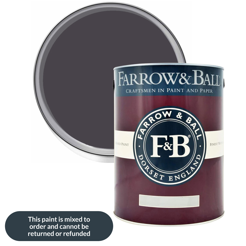 Give your walls a durable touch with this Farrow & Ball Modern Eggshell Satin Paint. It adds beautiful colour and a subtle satin finish while protecting wood, metal, and concrete. This tough, medium-sheen paint with a 40% sheen level is ideal for high-traffic areas like staircases, floors, kitchen cabinets, and even interior metal, garages, and workshops. It resists scuffs and stains, making it perfect for baseboards and other areas prone to wear and tear. Additionally, it is washable and wipeable for easy maintenance. Shade: Paean Black. Size: 5L.
