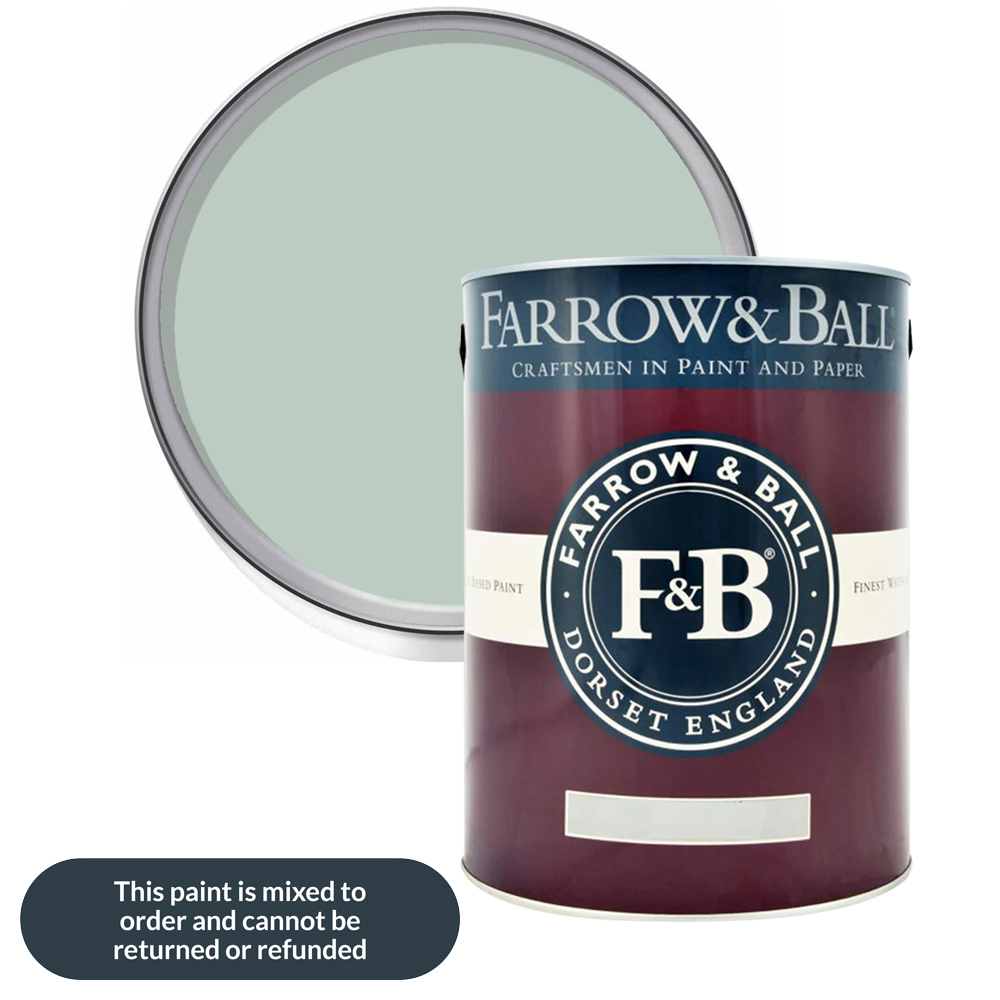 Give your walls a durable touch with this Farrow & Ball Modern Eggshell Satin Paint. It adds beautiful colour and a subtle satin finish while protecting wood, metal, and concrete. This tough, medium-sheen paint with a 40% sheen level is ideal for high-traffic areas like staircases, floors, kitchen cabinets, and even interior metal, garages, and workshops. It resists scuffs and stains, making it perfect for baseboards and other areas prone to wear and tear. Additionally, it is washable and wipeable for easy maintenance. Shade: Teresa's Green. Size: 5L.