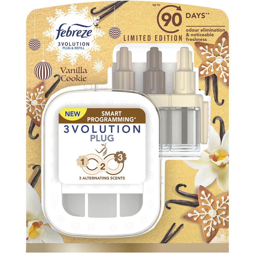 The Febreze 3Volution Air Freshener Kit, a 20ml device, continuously eliminates odours and offers a captivating sensory experience. Its three complementary scents, including vanilla and magnolia, create a warm, inviting atmosphere in your home. Enjoy up to 90 days of freshness (based on 12 hours of daily use at a low setting). Digital scent alternation, refreshing every 45 minutes, ensures consistently pleasant fragrance. Adjust the scent intensity to perfectly match your desired ambience.