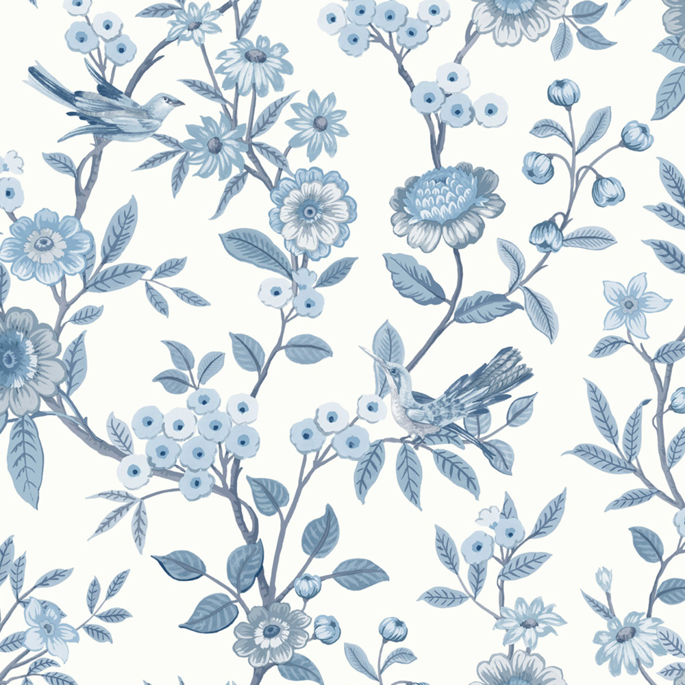 Fine Decor Eleanor Floral Blue Wallpaper brings classic elegance to your space. Inspired by traditional chinoiserie artistry, it depicts a captivating botanical scene with delicate floral blooms and graceful birds, all rendered in a hand-painted chinoiserie trail. Its on-trend colour palette blends contemporary and classic hues seamlessly, complementing any modern interior. Perfect for a feature wall or an entire room, the hand-painted design adds sophistication and grace. Easy to hang using paste-the-wall application, it's a beautiful choice for bedrooms, hallways, or living rooms.