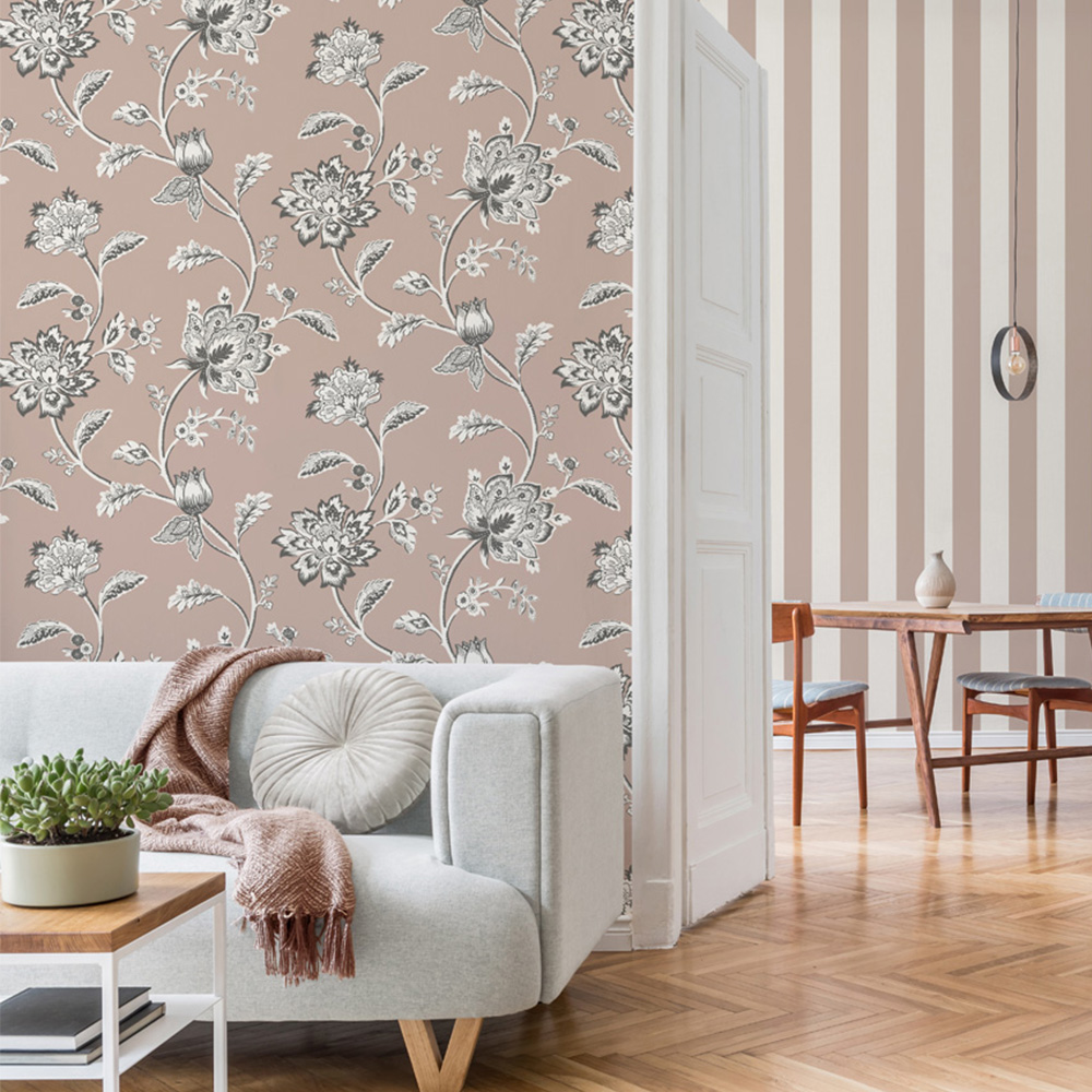 Fine Decor Juliette Floral Pink Wallpaper brings Jacobean-era romance to your home. Intricately detailed floral motifs climb a textured backdrop, shimmering subtly with delicate mica highlights. This luxurious wallpaper offers a tactile experience, adding depth and dimension to any space. Use it to create a feature wall or cover an entire room, it coordinates beautifully with Juliette Stripe wallpaper for a cohesive design.