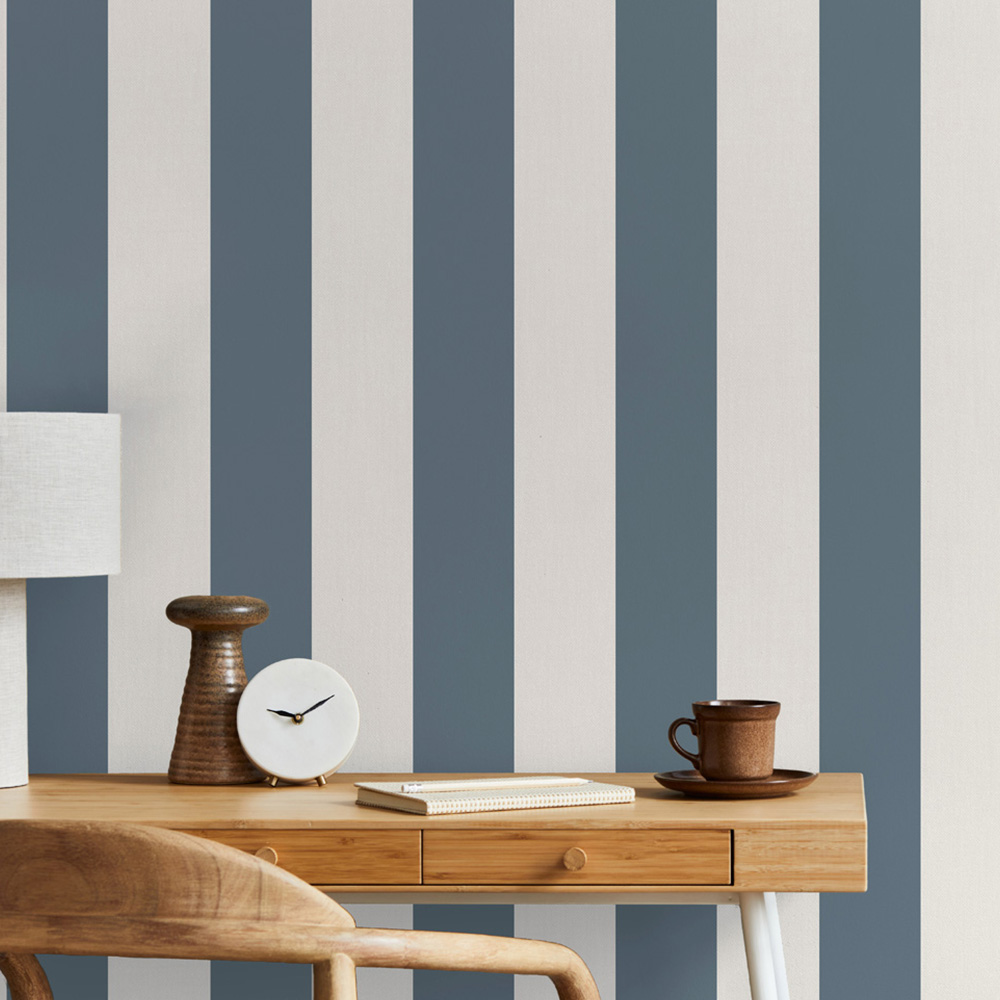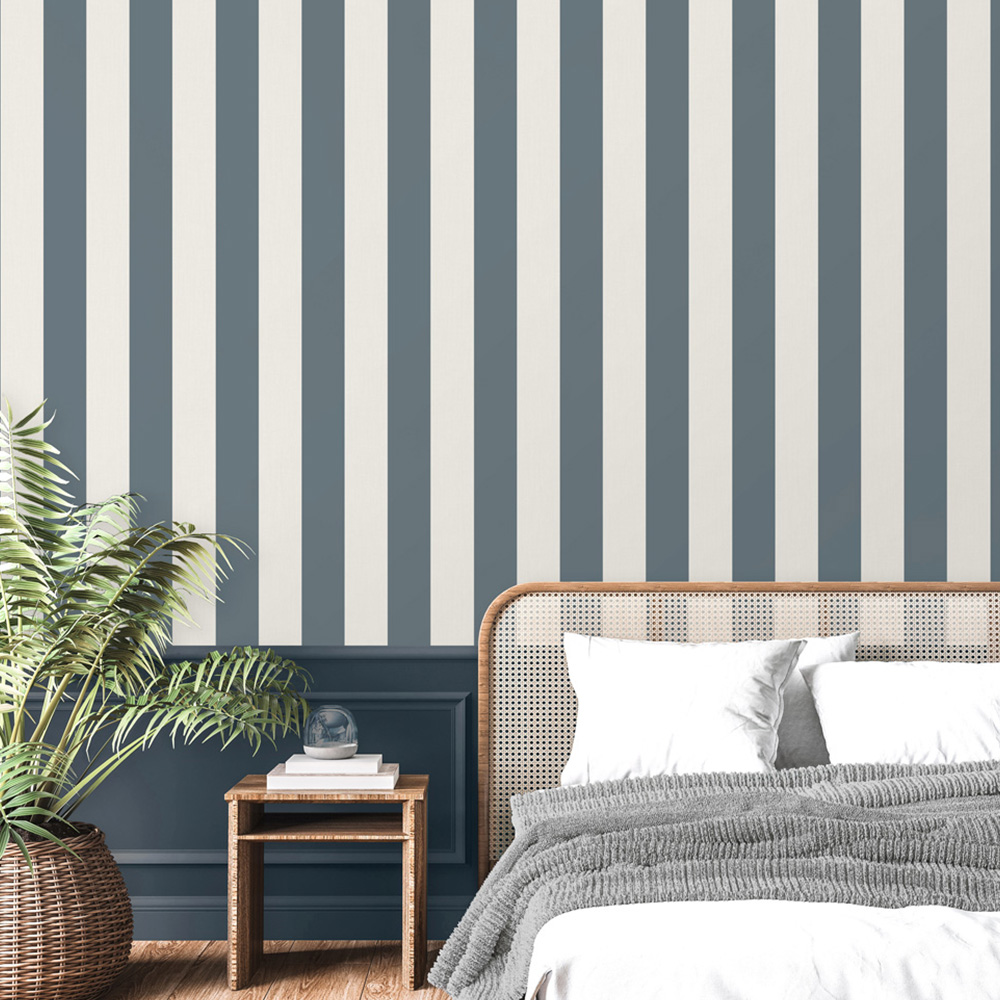 Juliette Stripe Blue Wallpaper by Fine Decor brings timeless sophistication to your home. Its detailed stripe design, accented with delicate mica highlights, subtly shimmers, adding understated glamour. The textured background offers depth and tactile richness, creating a captivating backdrop for your décor. Effortlessly coordinating with floral patterns, this wallpaper is perfect for dining rooms, studies, or bedrooms, adding luxury and depth to any space.