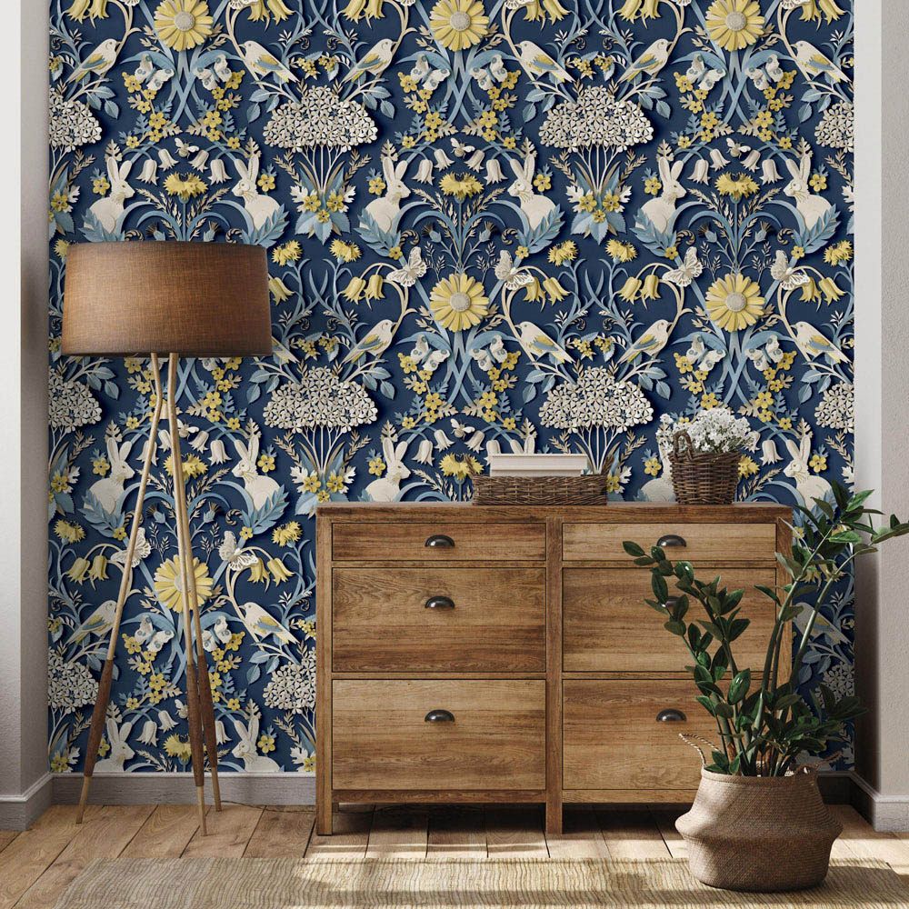 Transform your living space into a haven of style and tranquillity with this Fine Decor Woodland Navy Wallpaper. Featuring a rich blue backdrop adorned with delicate florals and graceful birds, this wallpaper doesn’t just cover your walls—it brings them to life! Imagine walking into a room that feels like a serene garden, right from the comfort of your home.