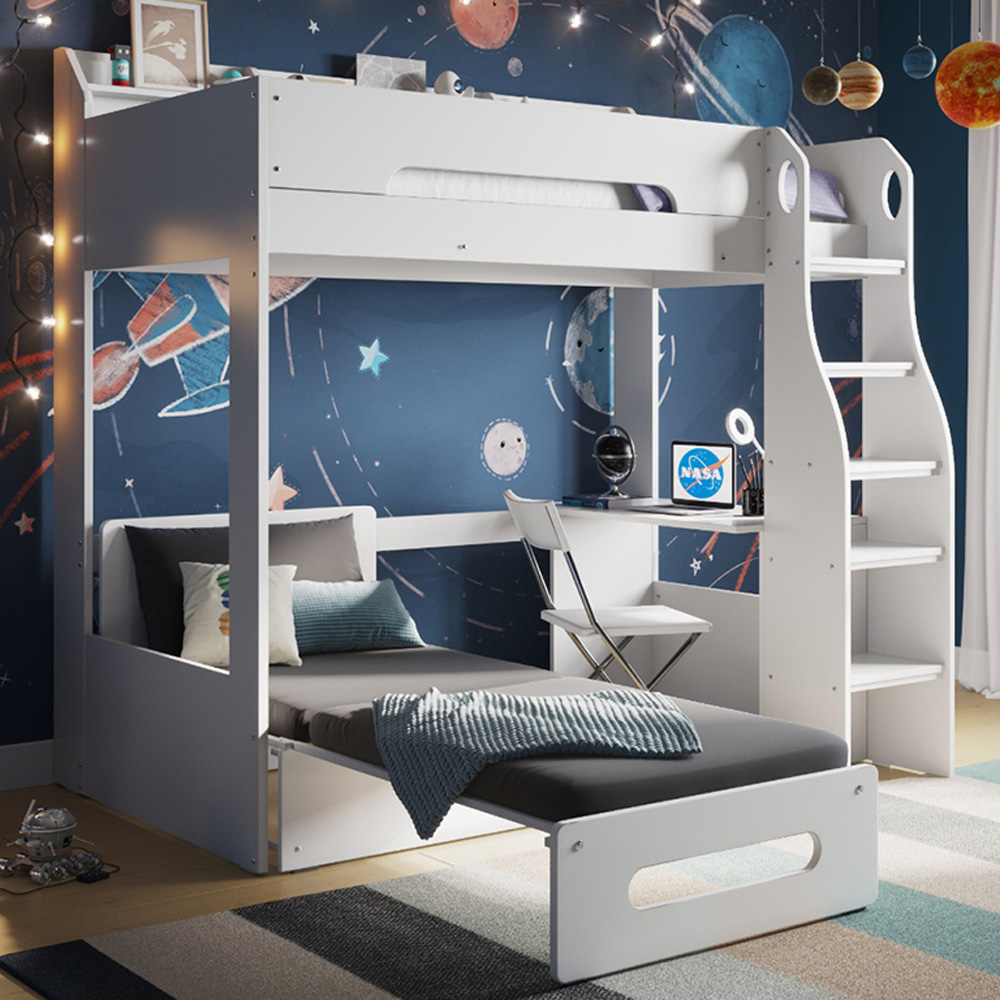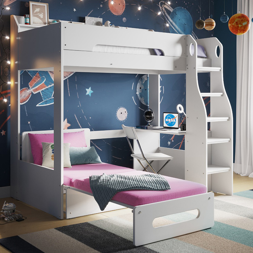 Flair Cosmic Wooden White High Sleeper with Charcoal Grey Futon