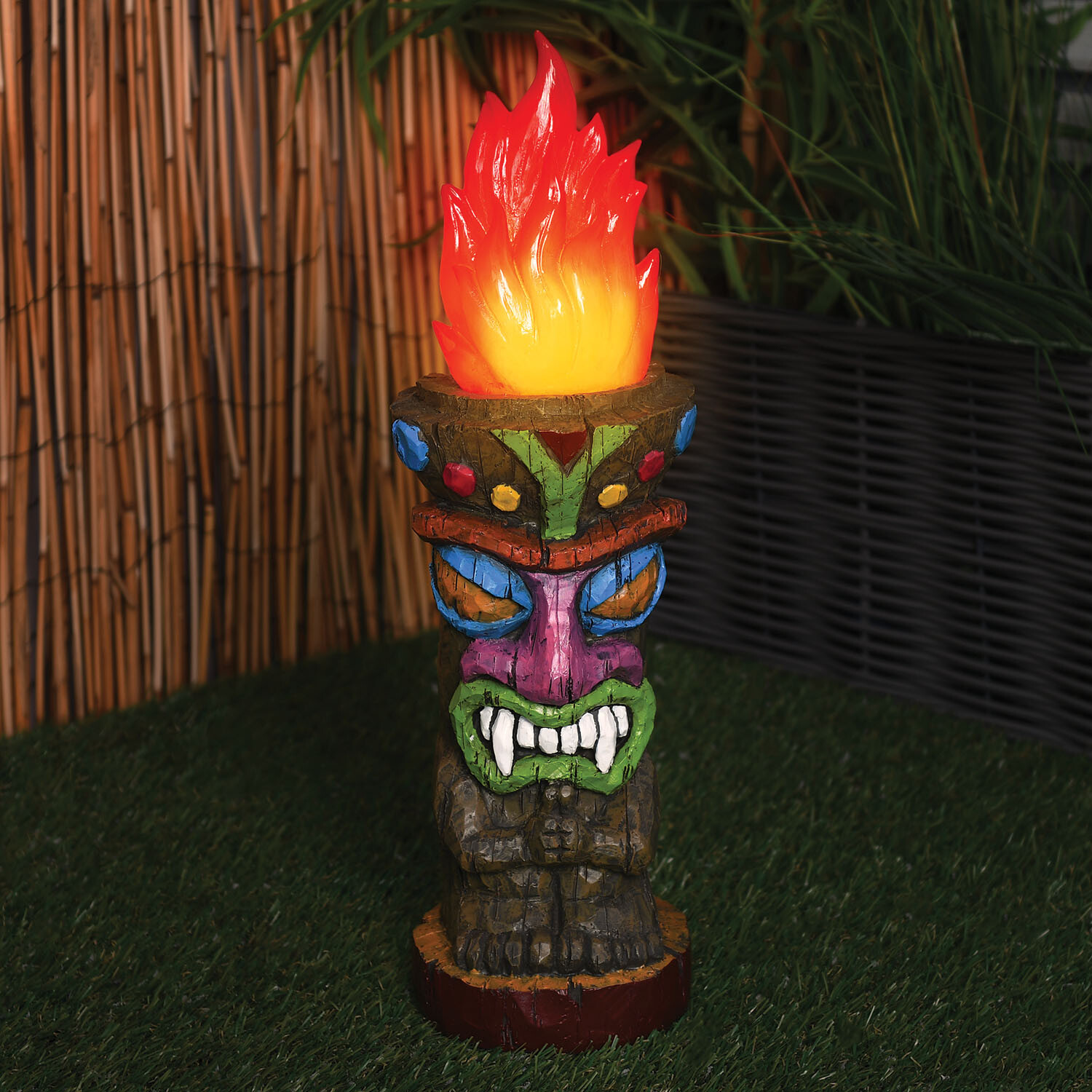 Bring the warmth and mystery of the islands to your garden with the Flaming Tiki Statue. This impressive garden decoration boasts traditional-inspired carvings and vibrant colours, creating a standout piece. Equipped with solar lights, it automatically illuminates at dusk, casting a warm, exotic glow and adding a festive atmosphere to your outdoor space. Intricate details complete this captivating design.
