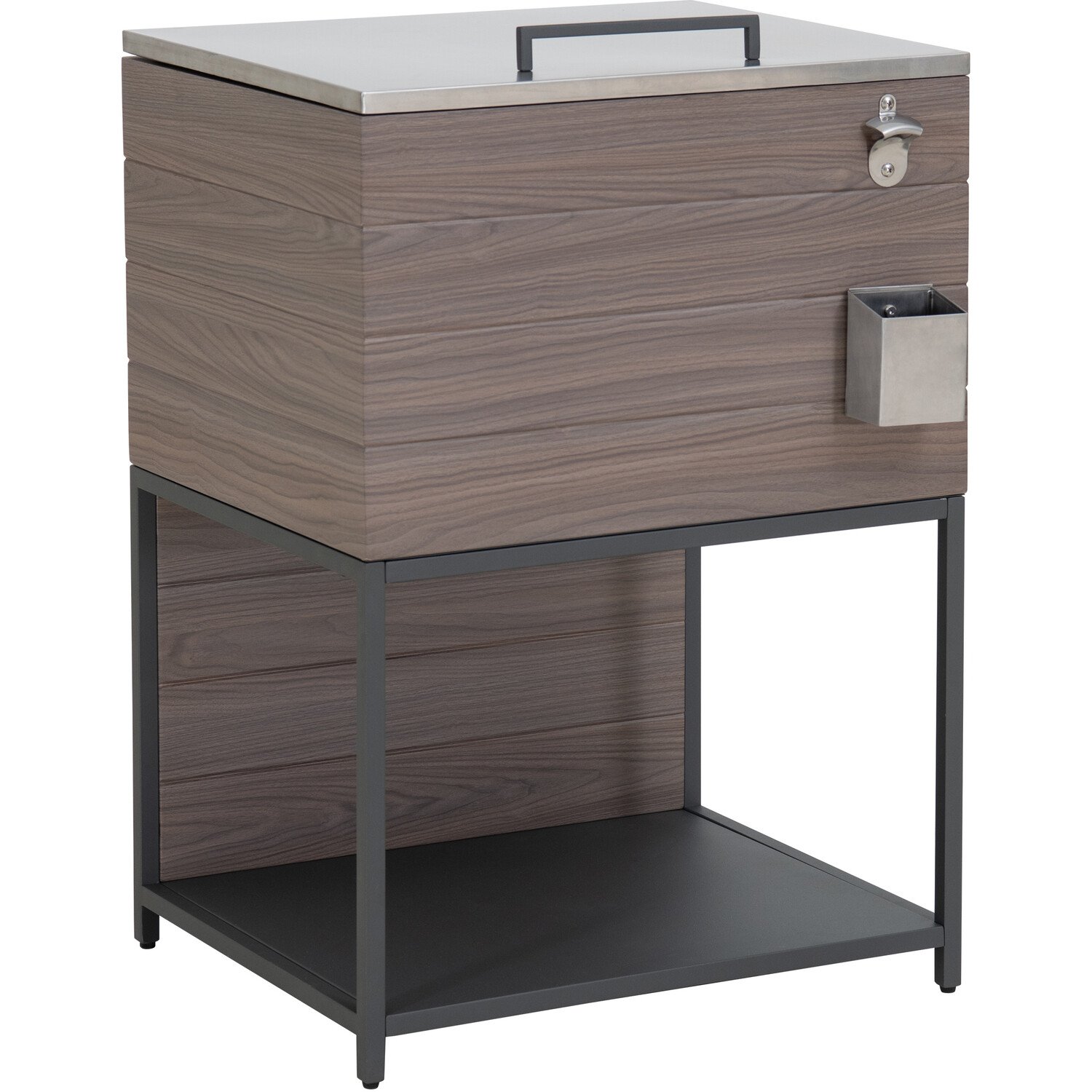 Make a practical addition to your kitchen with this Fleetwood Natural Outdoor Kitchen Cooler. Besides a place to keep beverages cool, it also features a shelf for storage, a bottle opener and a cap collector. Finished in a sleek wood effect, it offers a stylish way to keep beverages cool.