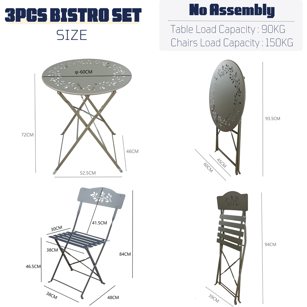 Looking for a stylish and space-saving solution for your balcony or garden? This delightful balcony furniture set, comprising a round folding table and two matching folding chairs, is just the ticket. The set’s rich colours and chic design effortlessly enhance both indoor and outdoor spaces. Crafted from robust, powder-coated steel, this set is built to withstand the elements and provide years of reliable use. Each piece boasts weather-resistant properties, ensuring maximum strength and long-lasting durability.