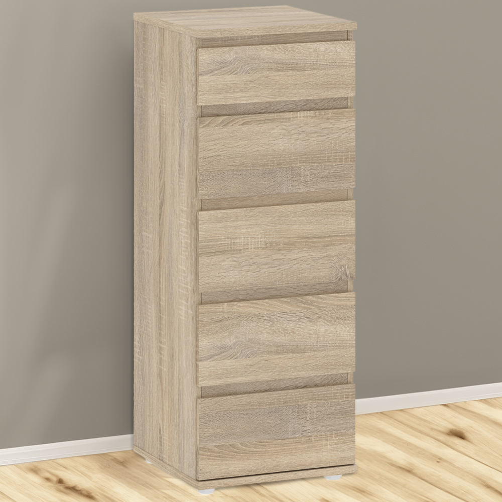 Portofino 5 Drawer Light Wood Narrow Chest of Drawers