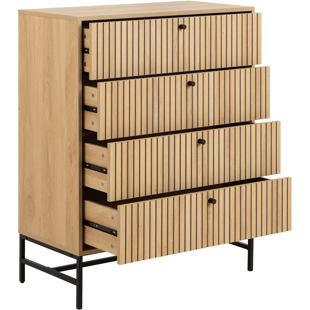Florence Albany 4 Drawer Oak Chest of Drawers with Black Legs