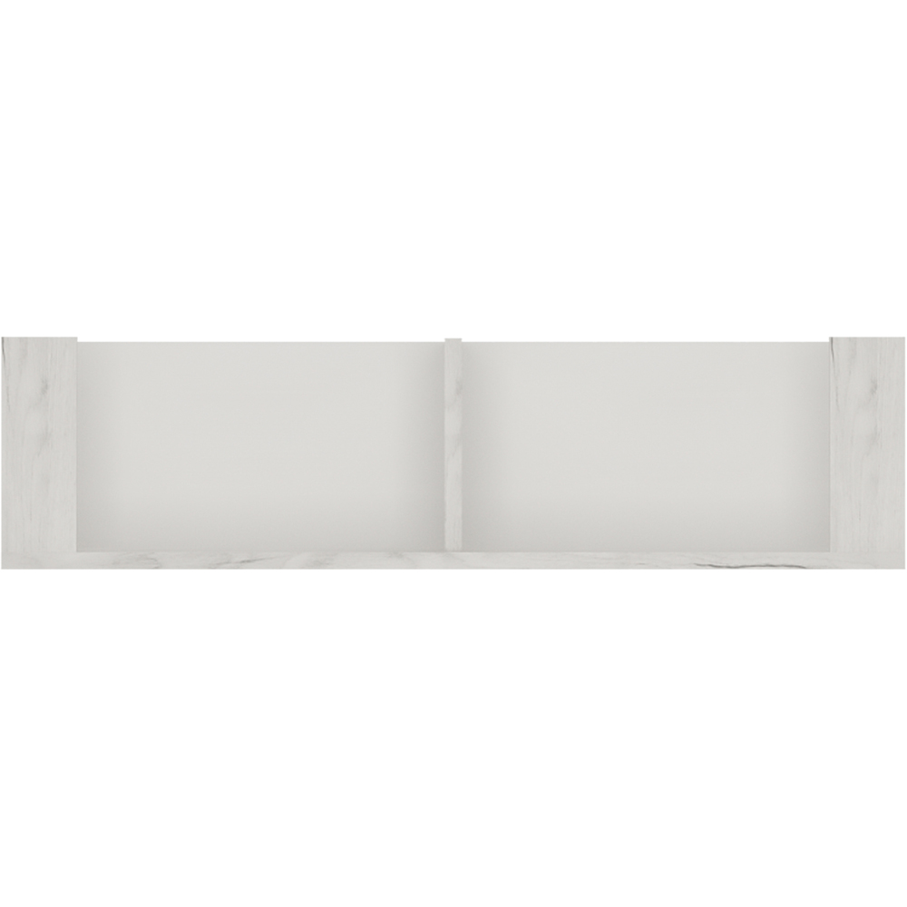 This stylish wall shelf is a contemporary update for any bedroom, perfect for all ages. Finished in a durable, long-lasting white crafted oak melamine, its 84cm width is divided into two convenient sections, ideal for placement above other furniture. Crafted from damage-, scratch-, moisture-, and high-temperature-resistant laminated board, and featuring decorative, gently rounded MDF mouldings, this shelf offers both beauty and practicality. Easy self-assembly is a bonus.