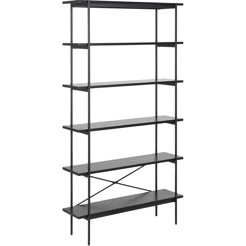 This contemporary wall unit's clean lines and airy design bring a modern feel to your living space. Its five sleek black ash shelves provide ample storage, and the sturdy powder-coated metal legs add a stylish, contemporary finish.