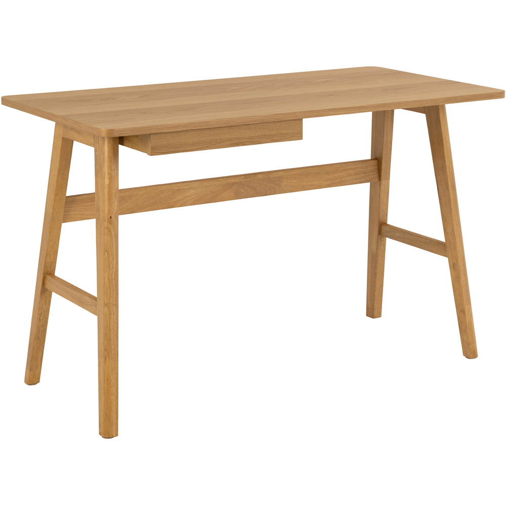 This stylish desk combines practicality and elegance. Its matt oak lacquered veneer top and drawer are beautifully complemented by a stained lacquered rubberwood base, creating a sophisticated workspace.