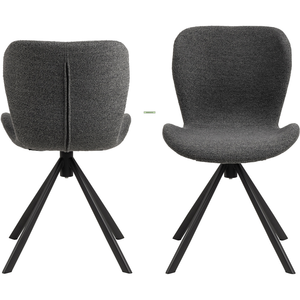 Transform your dining area with this stylish pair of dining chairs. Crafted with a sleek, matt black steel base, these chairs boast a 360° swivel function for effortless movement. The dark grey Monza fabric upholstery, accented by eye-catching zigzag stitching, adds a touch of contemporary sophistication. Perfect for adding a modern edge to your dining space, this set of two chairs offers both comfort and style.