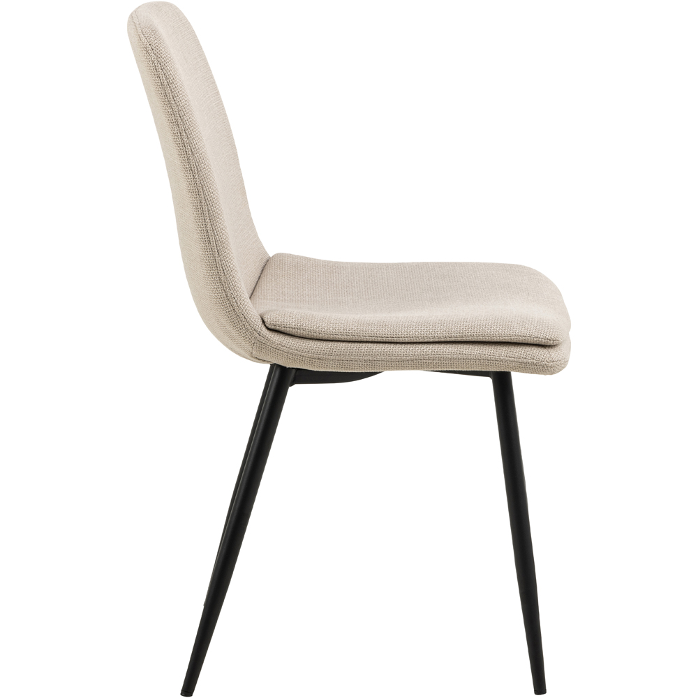 Stylish and comfortable, these four dining chairs are a perfect addition to any modern dining space. The plush beige fabric upholstery and sleek matte black steel base create a sophisticated look, ideal for contemporary settings. Enjoy comfortable seating at your next dinner party or family meal.