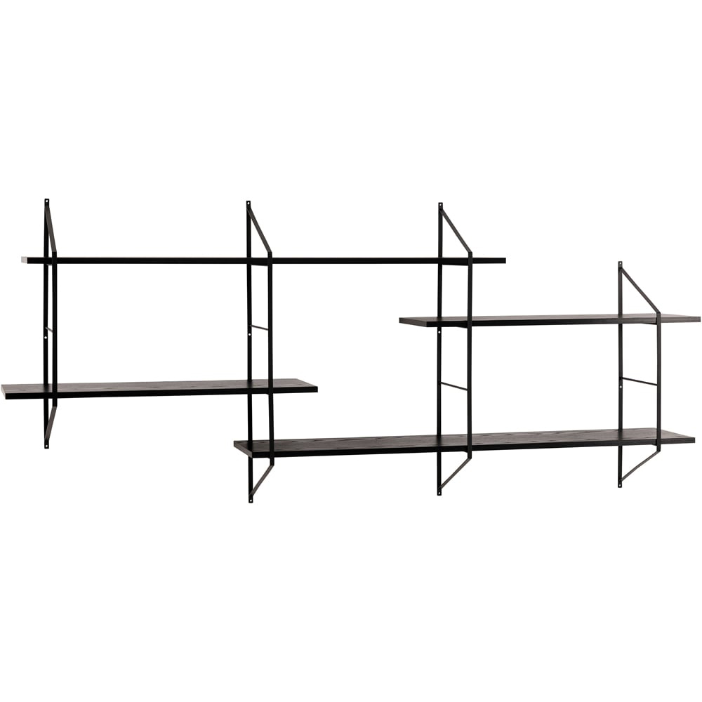 Elevate your interior with this stylish rectangular wall shelf. Its sleek matte black steel frame and four ash black effect shelves offer a perfect blend of form and function. The unique asymmetrical design adds a modern touch, creating a striking display area for your cherished belongings.