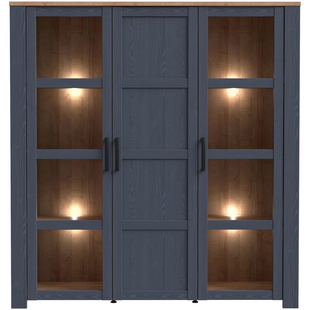 Florence Bohol 3 Door Riviera Oak and Navy Large LED Display Cabinet