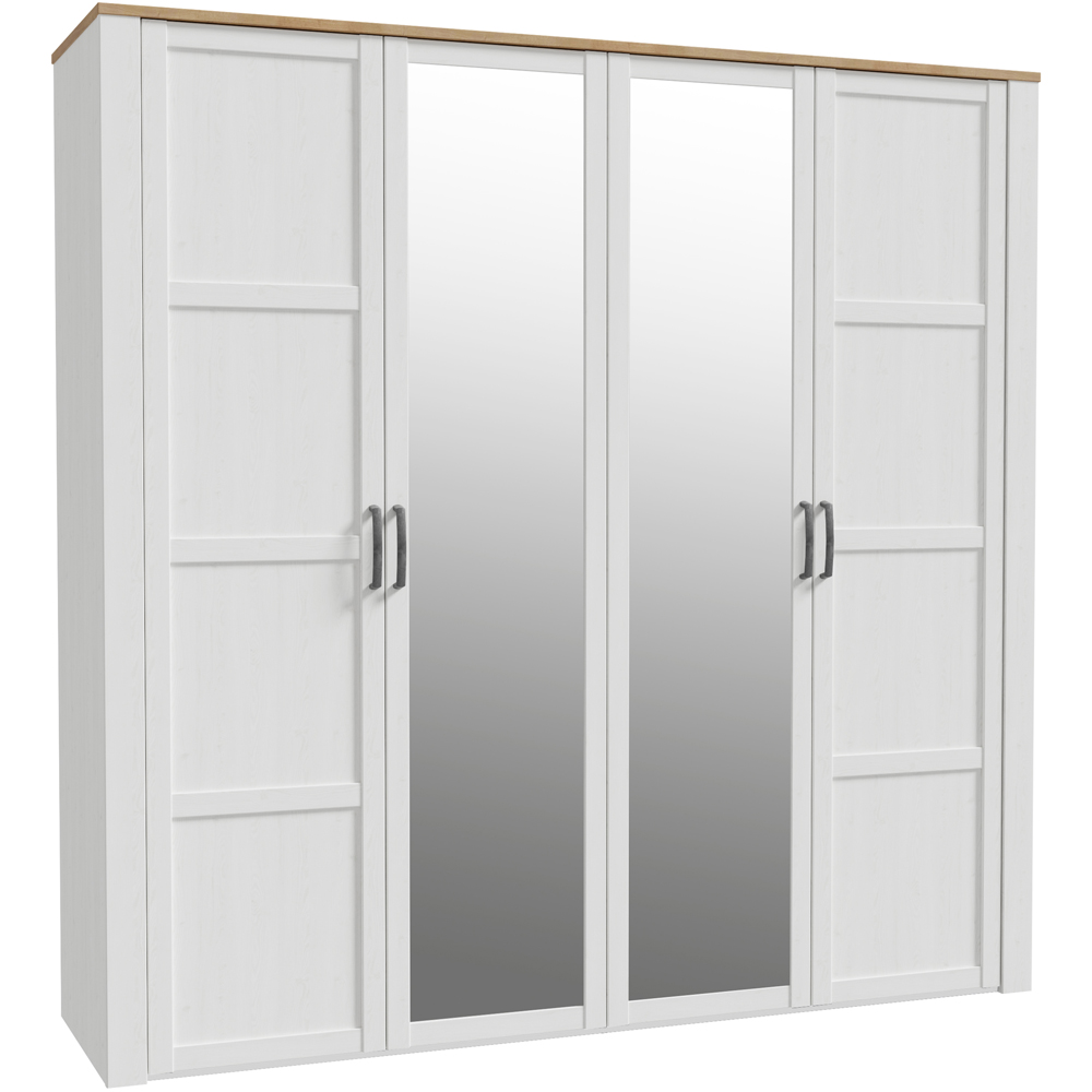 Florence Bohol 4 Door Riviera Oak and White Mirrored Wardrobe